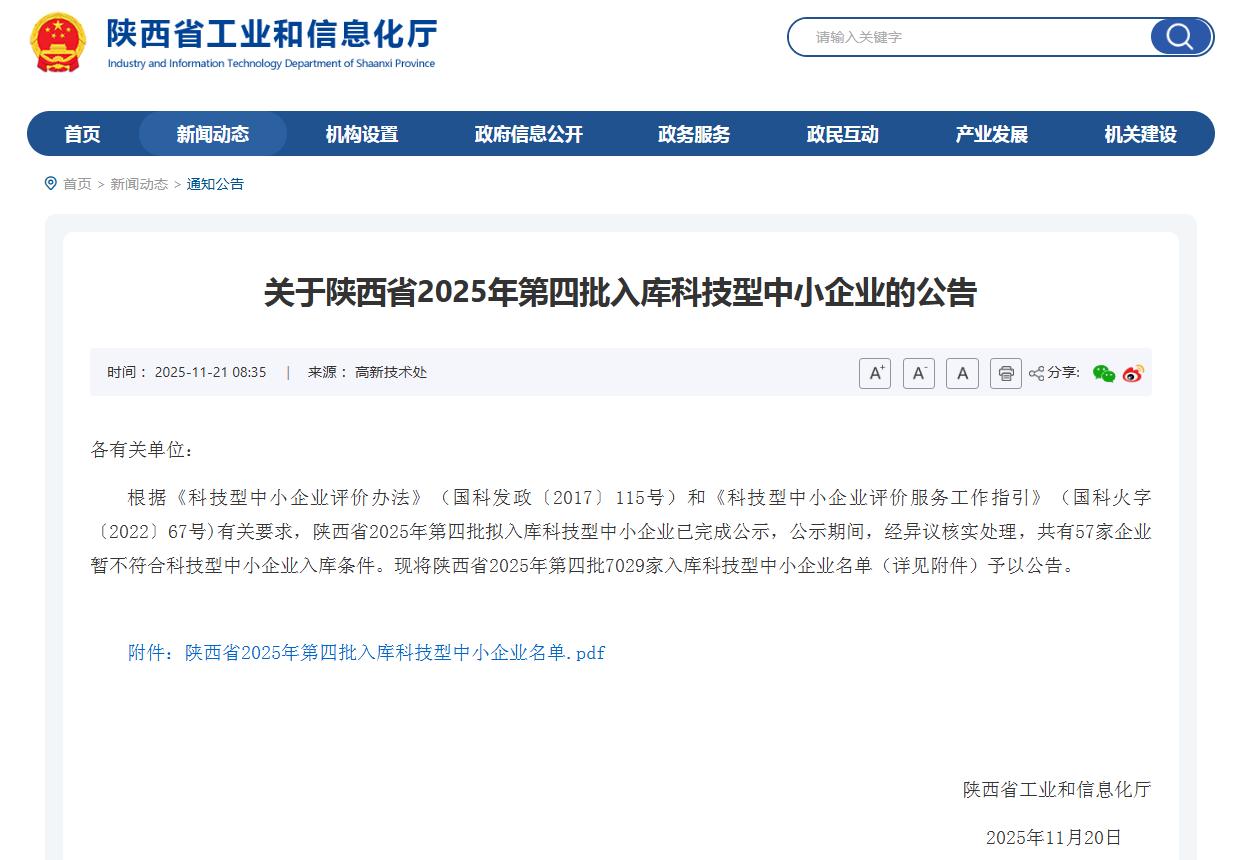 【西安訊】近日,陜西省工業(yè)和信息化廳發(fā)布了《關(guān)于陜西省2025年第四批入庫(kù)科技型中小企業(yè)的公告》,西安贏潤(rùn)環(huán)??萍技瘓F(tuán)有限公司憑借在環(huán)??萍碱I(lǐng)域的創(chuàng)新能力和技術(shù)實(shí)力,成功入選本批次科技型中小企業(yè)名單。